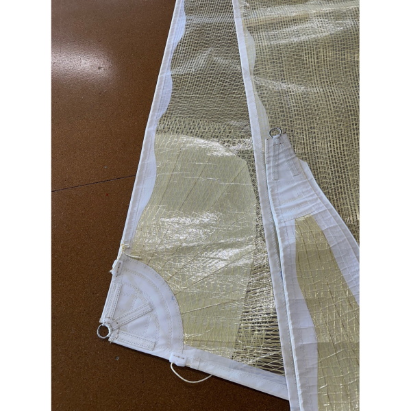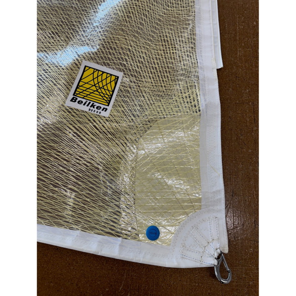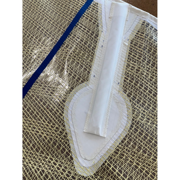 Laminat (Mylat/Kevlar) Rollfock, ca.13 m2, mit horizontalen Rollerbatten, neuwertige Lagerware, inklusive Segelsack. Hals mit Gibb-Schäkel, Kopf und Schothorn mit Ring, 5mm Profilstreifen am Vorliek für Rollanlage. Das Segel ist gerollt im Langsegelsack.