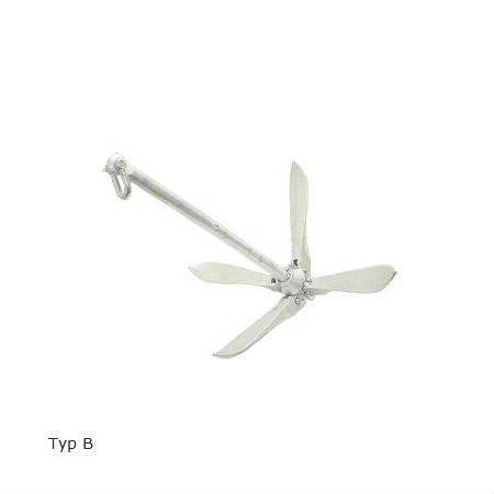 Gewichtsglocke bei den Größen 1,5 - 8 kg, der Schaft bleibt am Grund. Bei Verwendung als Hauptanker ist ein Kettenvorlauf empfehlenswert. Sehr Platz sparender Schirmanker, da zusammenklappbar.