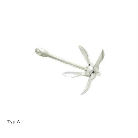 Gewichtsglocke bei den Größen 1,5 - 8 kg, der Schaft bleibt am Grund. Bei Verwendung als Hauptanker ist ein Kettenvorlauf empfehlenswert. Sehr Platz sparender Schirmanker, da zusammenklappbar.