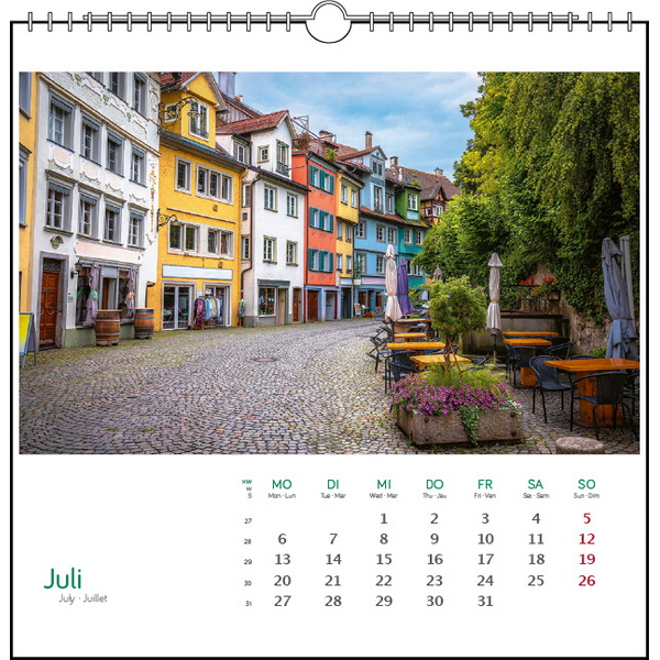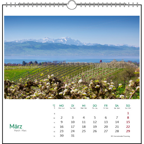 Features: 14 Blatt, Kalendarium 3-sprachig (D/GB/F)