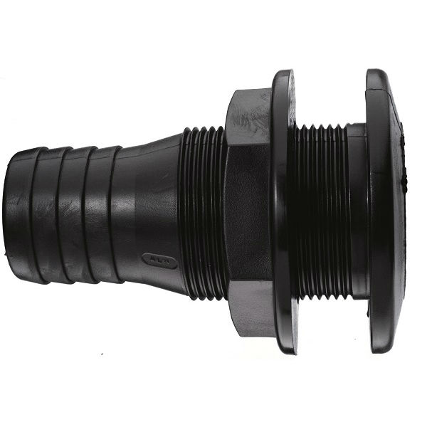 Außenbordanschluß, Borddurchlass Kunststoff weiß, mit Schlauchanschlussstutzen für Schläuche mit einem Ø 30 mm