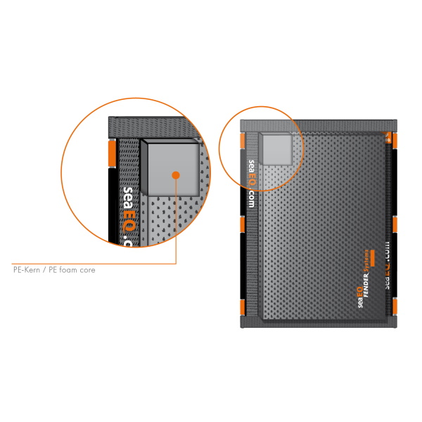 Dalbenfender PF 40/80 / Pfahlfender 400*800. Der seaEQ-Dalbenfender besteht aus hochfestem, schwerem Nylongewebe. Die dem Dalben zugewandte Seite ist PVC-beschichtet. Der Kern besteht aus einem speziellen PE-Schaum.