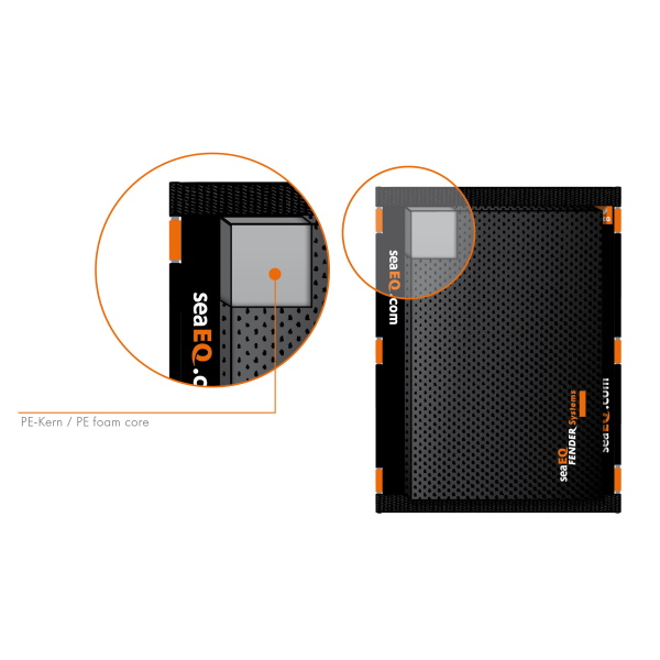 Das schwere, hochreißfeste Nylongewebe sorgt für eine lange Lebensdauer des Fenders. Bei Kontakt lässt der seaEQ-Dalbenfender die Yacht vorbeigleiten und bremst sie nicht. So schlägt das Boot, im Fall einer Berührung, nicht quer und bleibt manövrierfähiger. Der PE-Kern sorgt bei Berührung für die Kontaktdämpfung.